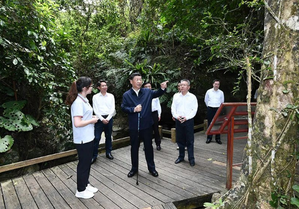 11日下午,習(xí)近平總書記到海南島中南部的五指山市考察調(diào)研。海南熱帶雨林國家公園是我國首批5個國家公園之一。習(xí)近平總書記深入五指山片區(qū),沿木棧道步行察看公園生態(tài)環(huán)境,不時停下腳步,詢問樹木生長、水源涵養(yǎng)、動植物資源保護等情況。