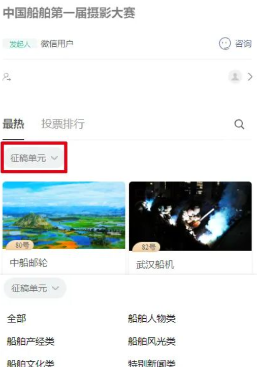 中國船舶第一屆攝影大賽→網絡投票通道→開啟