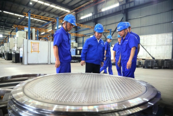 王國強(qiáng)深入科研生產(chǎn)一線,調(diào)研了相關(guān)車間、實(shí)驗(yàn)室、勞模創(chuàng)新工作室,察看了智能制造中心、重點(diǎn)產(chǎn)品、相關(guān)技術(shù)進(jìn)展;慰問了勞模工匠、一線員工,與他們就現(xiàn)場管理看板優(yōu)化、工藝改善等交流互動(dòng),勉勵(lì)他們健康生活、快樂工作,叮囑相關(guān)單位負(fù)責(zé)人要做好防暑降溫工作;聽取了相關(guān)二級管理單位生產(chǎn)經(jīng)營、深化改革、科技創(chuàng)新、人才培養(yǎng)、黨的建設(shè)等方面情況匯報(bào)。