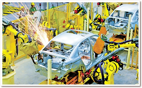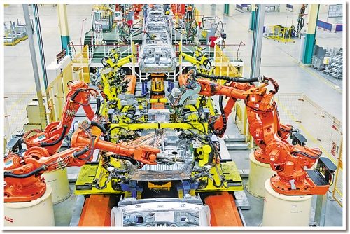 日前,記者在東風(fēng)汽車公司旗下神龍汽車公司成都工廠焊裝車間看到,占地面積約10個(gè)足球場的車間儼然就是一個(gè)“機(jī)器人王國”:442臺各種機(jī)器人都在忙碌著,所有點(diǎn)焊、弧焊、激光焊、螺柱焊、涂膠、包邊、鉚接、部件搬運(yùn)等“重活、累活”全部由機(jī)器人自動(dòng)完成。焊裝分廠廠長孫繼勝介紹說,除442臺機(jī)器人外,車間還有另外一個(gè)“撒手锏”??六面體轉(zhuǎn)臺設(shè)備。“原來生產(chǎn)1個(gè)車型要建6條生產(chǎn)線,現(xiàn)在1條生產(chǎn)線就可以生產(chǎn)6種車型。”孫繼勝說。
