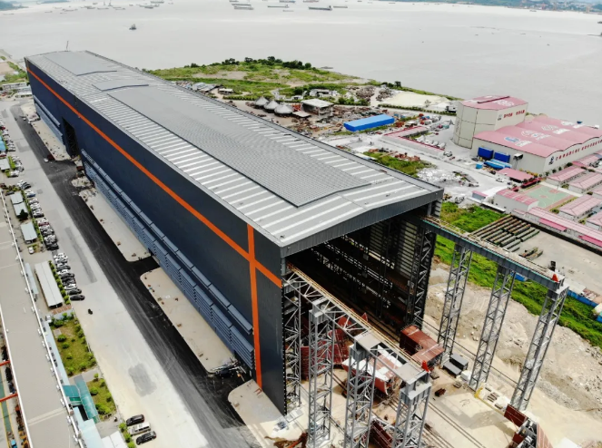 ????日前,中國(guó)船舶集團(tuán)旗下黃埔文沖龍穴廠區(qū)室內(nèi)總裝及分段總組車間工程正式完工移交。這是目前國(guó)內(nèi)最高、跨度最大的單層室內(nèi)總裝及分段總組車間。