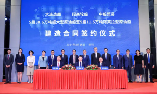 近日,中國(guó)船舶集團(tuán)旗下大連造船聯(lián)合中船貿(mào)易與招商輪船簽署5艘30.6萬(wàn)噸原油船、5艘11.5萬(wàn)噸原油船建造合同。