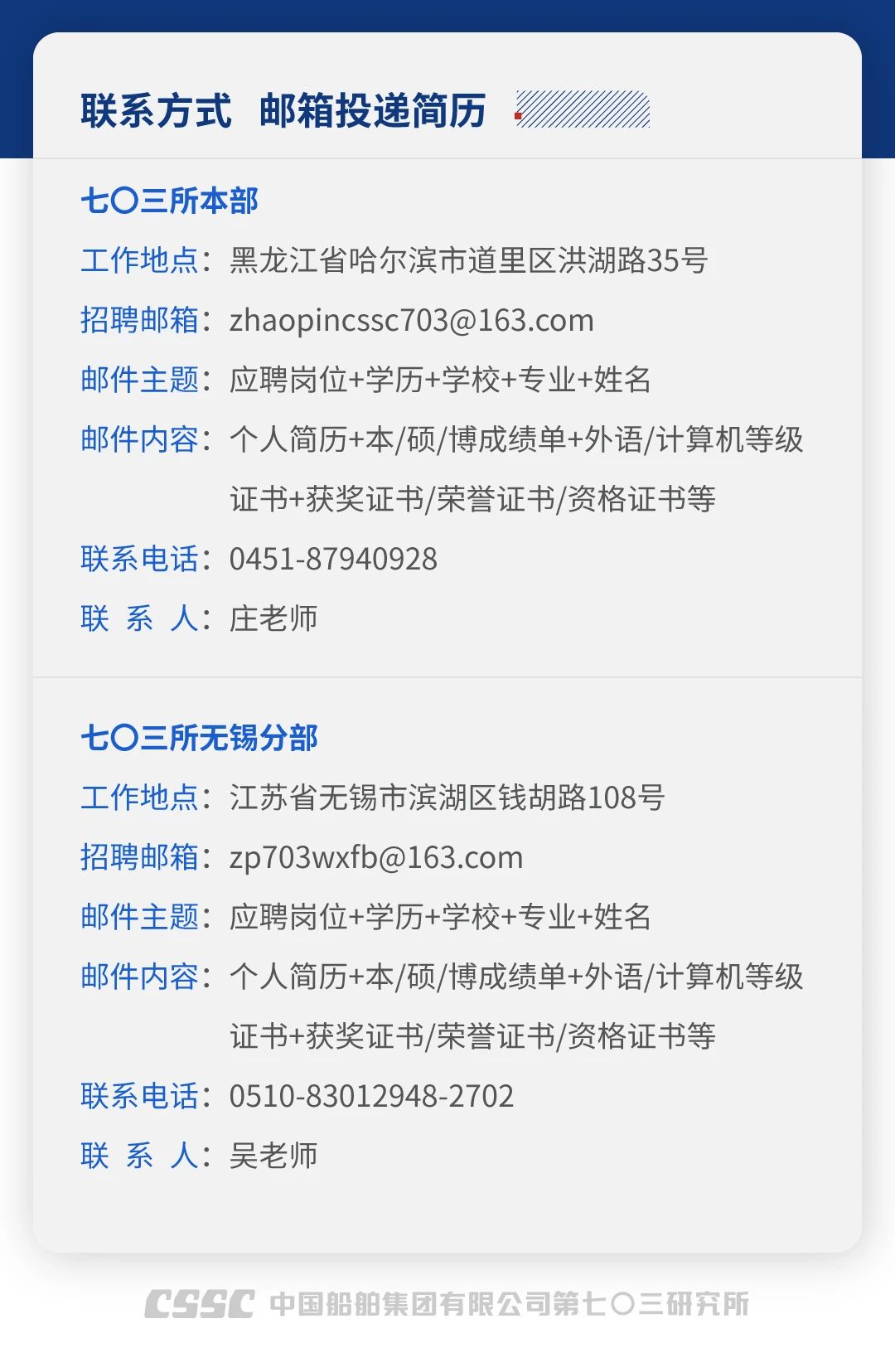 中國船舶集團旗下七〇三所、七二二所校園招聘啟事